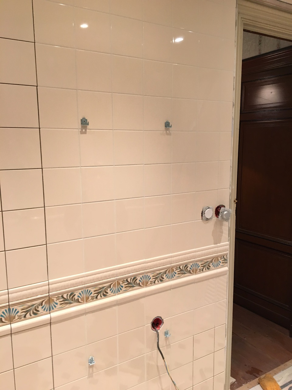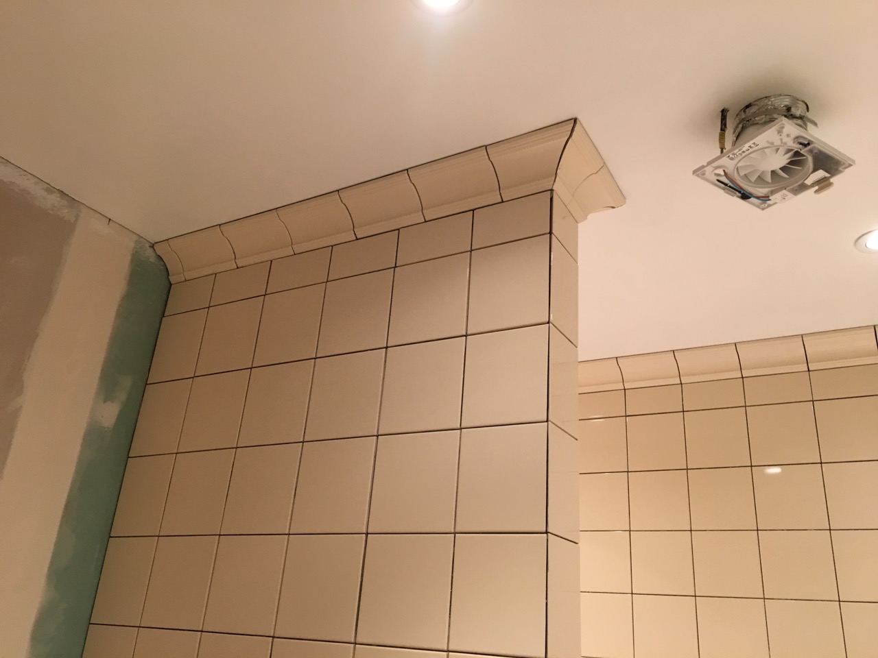 Fogat runt omkring handdukstorken och kaklat några plattor närmast taket. I morgon kommer elektrikern och kopplar in handdukstorken.
