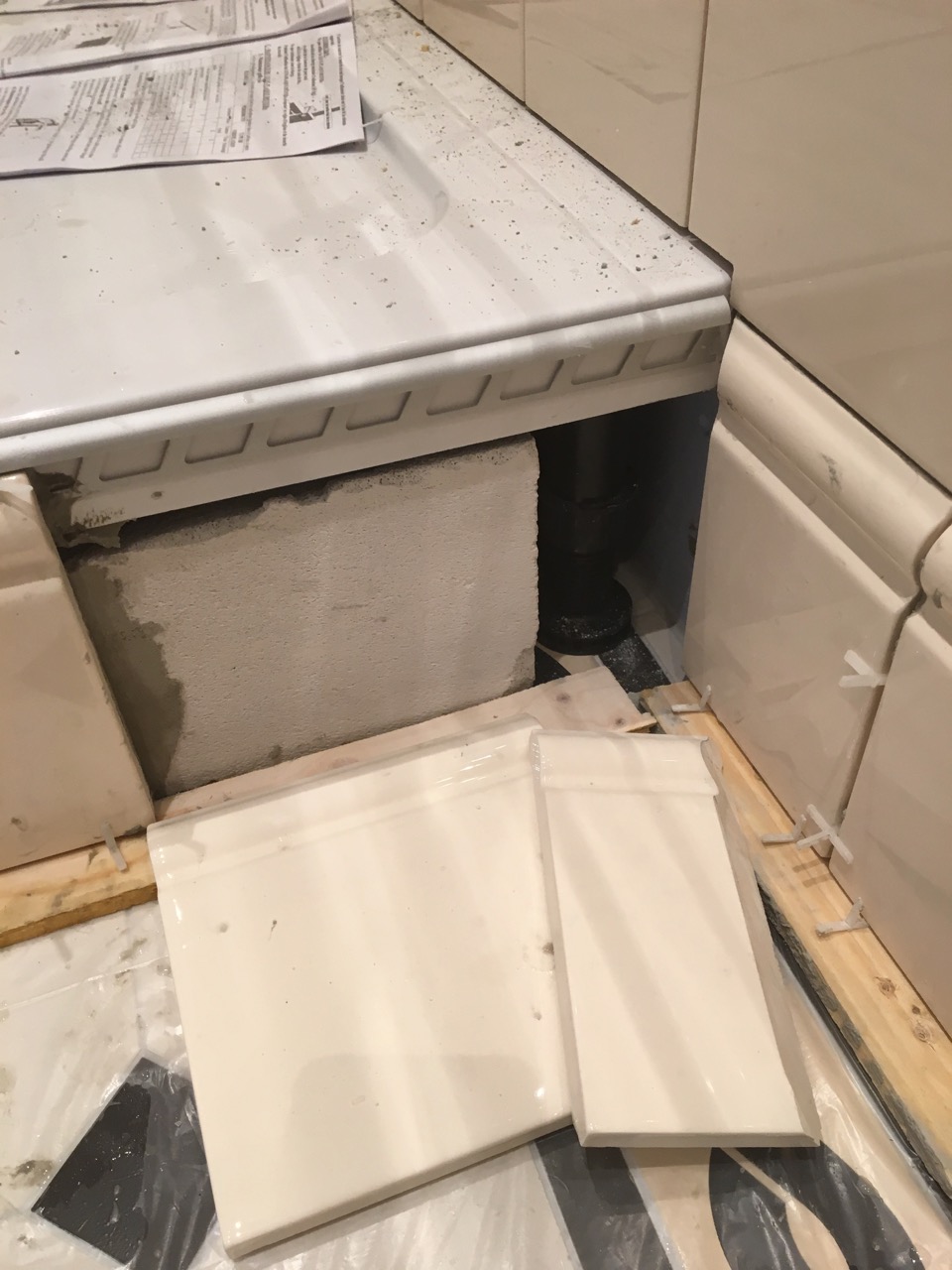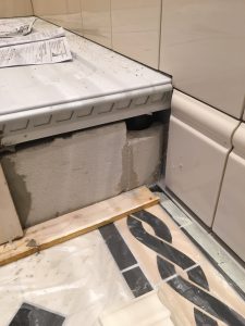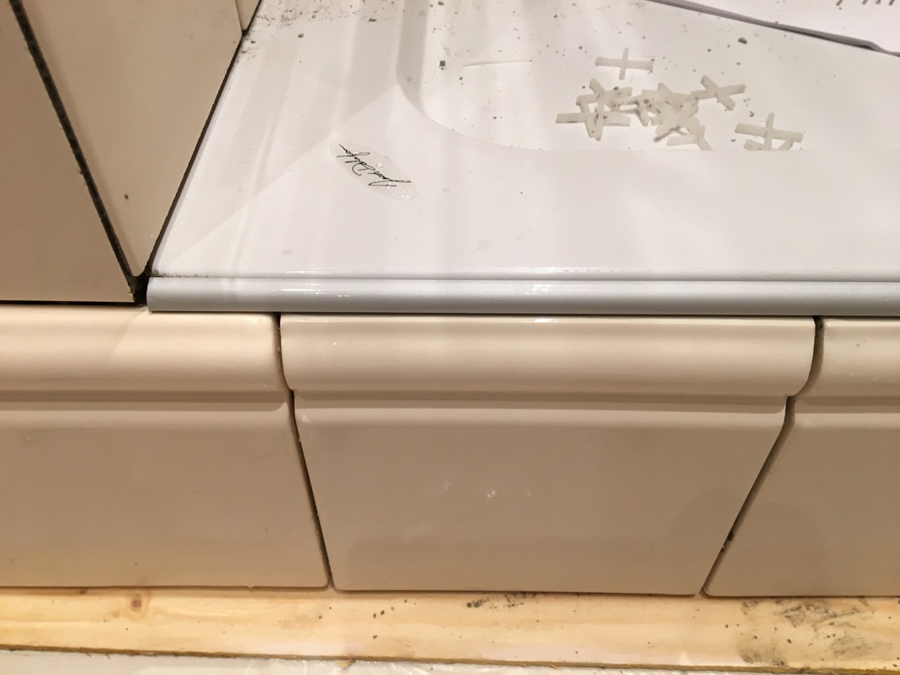 Och här är en detaljbild på den lilla extra listen som jag la dit för att täcka för sockelplattornas oglaserade yta på toppen.