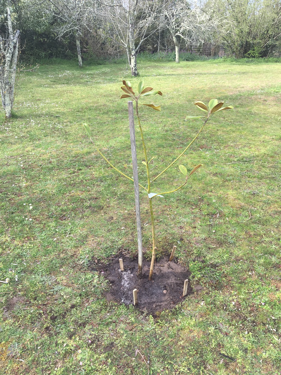 Planterat två träd, Williamspäron och Magnolia Grandiflora. Päronträdet är över 2 m, magnolian runt 1 m.