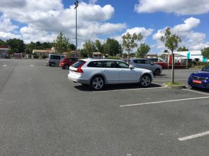 V90 som knappt får plats på en ordinarie parkeringplats.