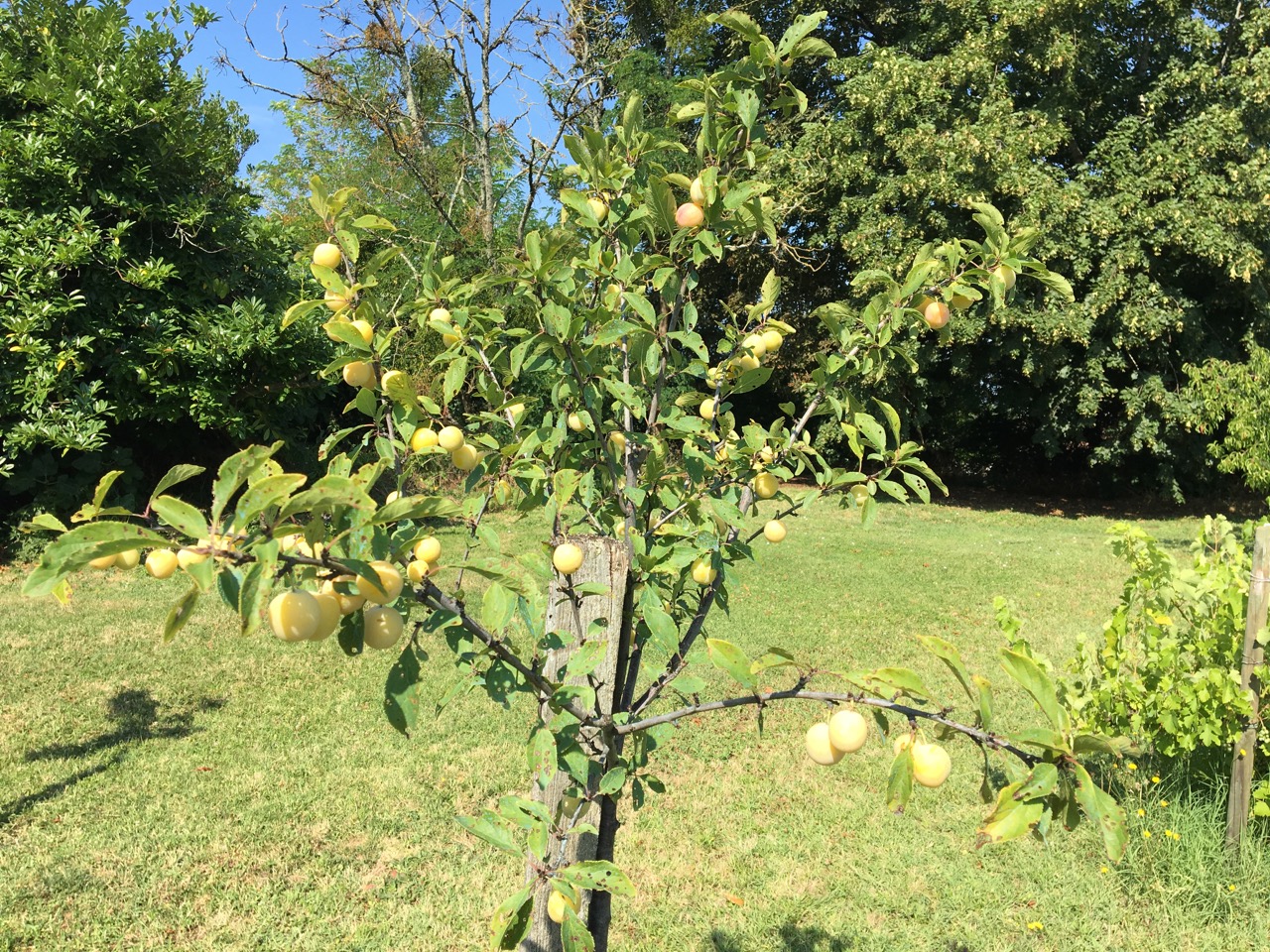 Och relativt nya plommonträdet (mirabelle) har massor av plommon.