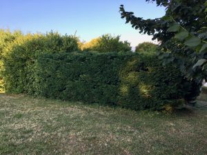 Fortsatt med att skrapa bort färg från fönstret och klippa tujahäcken.