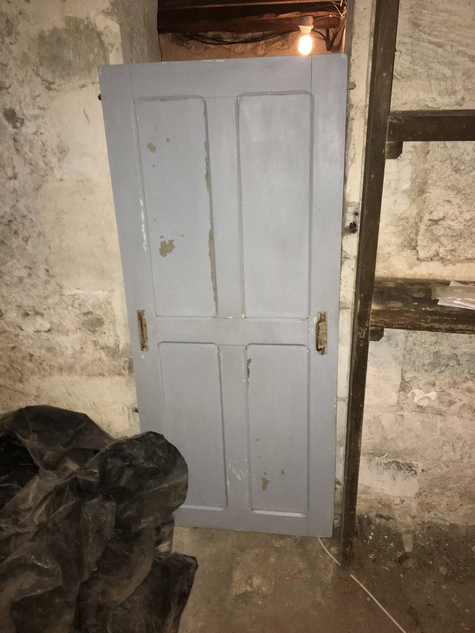 Letade reda på en dörr i ett uthus som kan användas till vinkällaren. Lite för kort men kan väl förlängas vid behov. Måste fixa gångjärn bara.