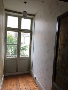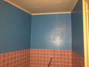Jag nåtade golv och fortsatte med tapetseringen. Har kollat lite efter reglar i tak eftersom jag vill sätta upp nya gipsskivor i hallen och även i badrummet nere.
