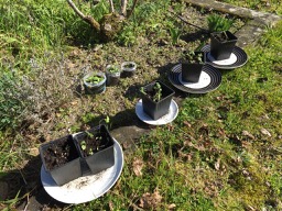 Jag tog ju ned en massa växter som jag drivit upp hemma. En del fick åka i plastburkar. Andra som var för långa för de burkar jag hade fick åka inlindade i fuktigt hushållspapper i en plastpåse. De som åkte i burk har klarat sig bra men de andra är rätt hängiga. Idag fick de alla fall vara ute i solen ett par timmar för att anpassa sig.