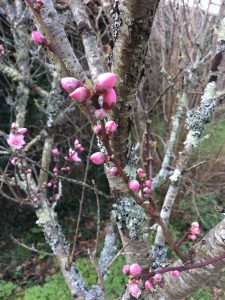 Persikoträden börjar blomma.