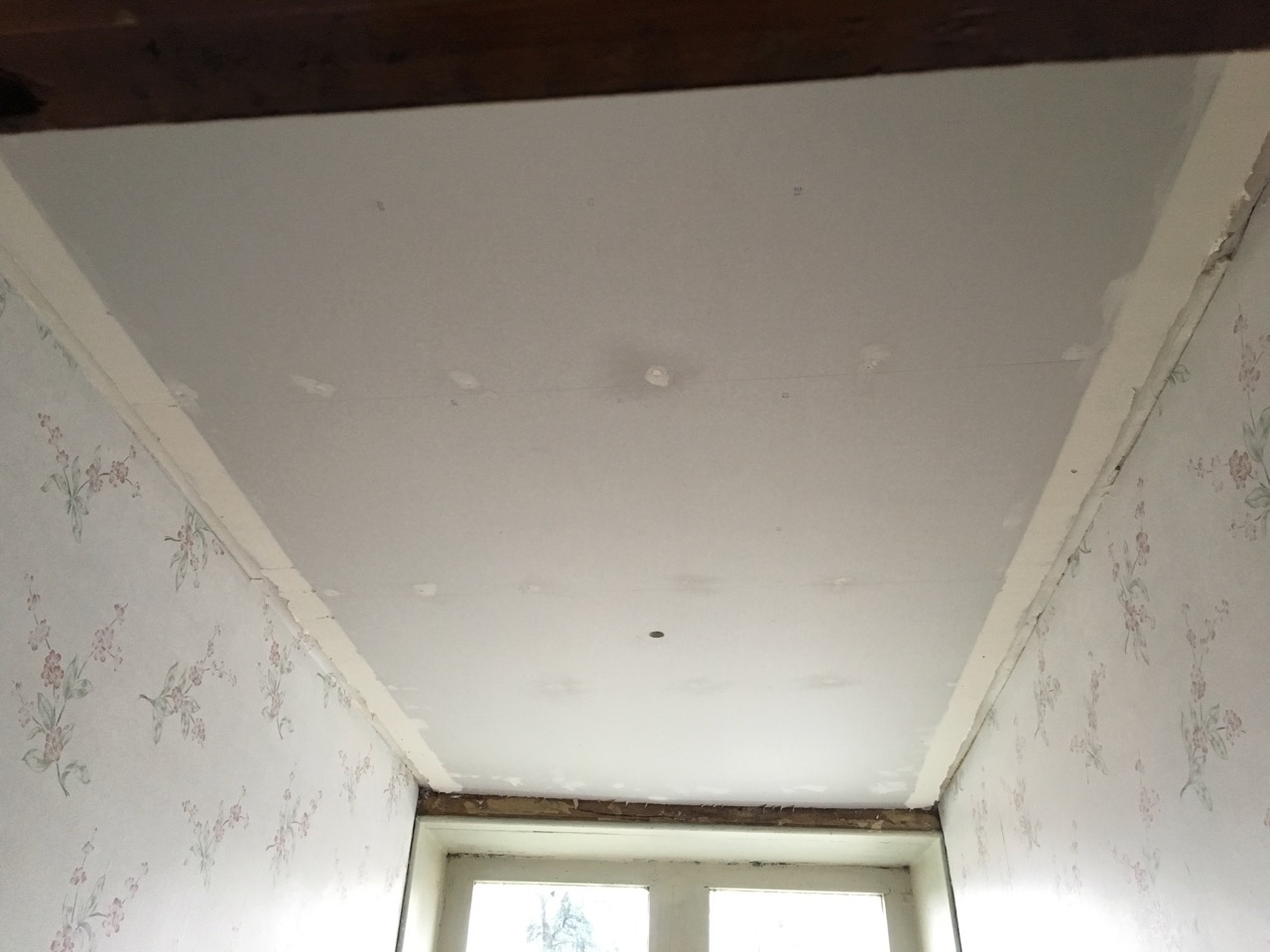 Och satte upp gipsskiva som nytt innertak.