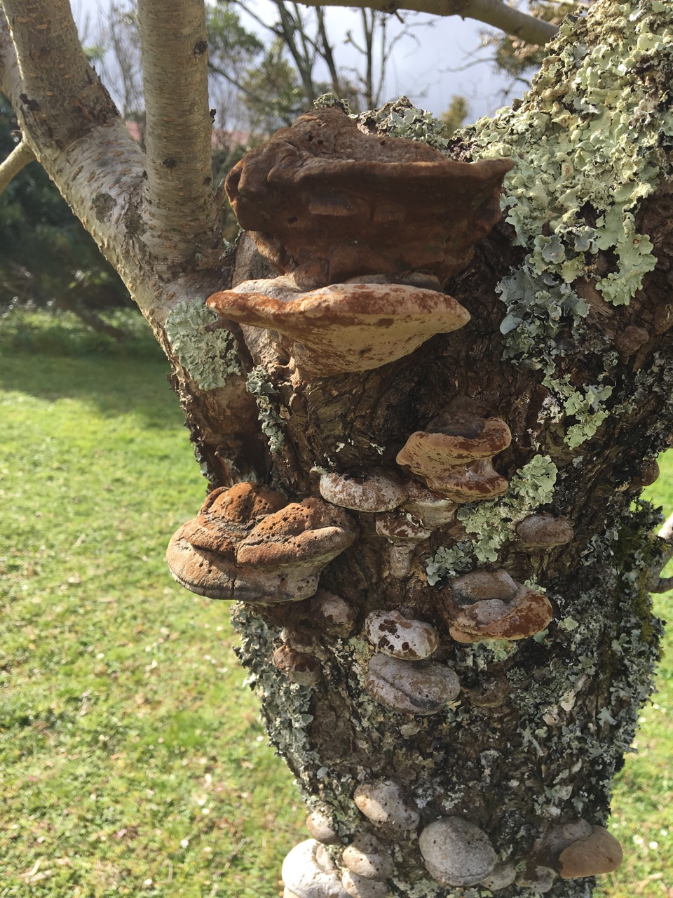Fixat mycket i trädgården. Rensat ogräs mm. Igår tog jag bort en svamp som drabbat persikoträden. Skar bort den och borstade sedan bort resterna och sist sprutade på den magiska bordeaux-vätskan (bouillie bordelaise).
