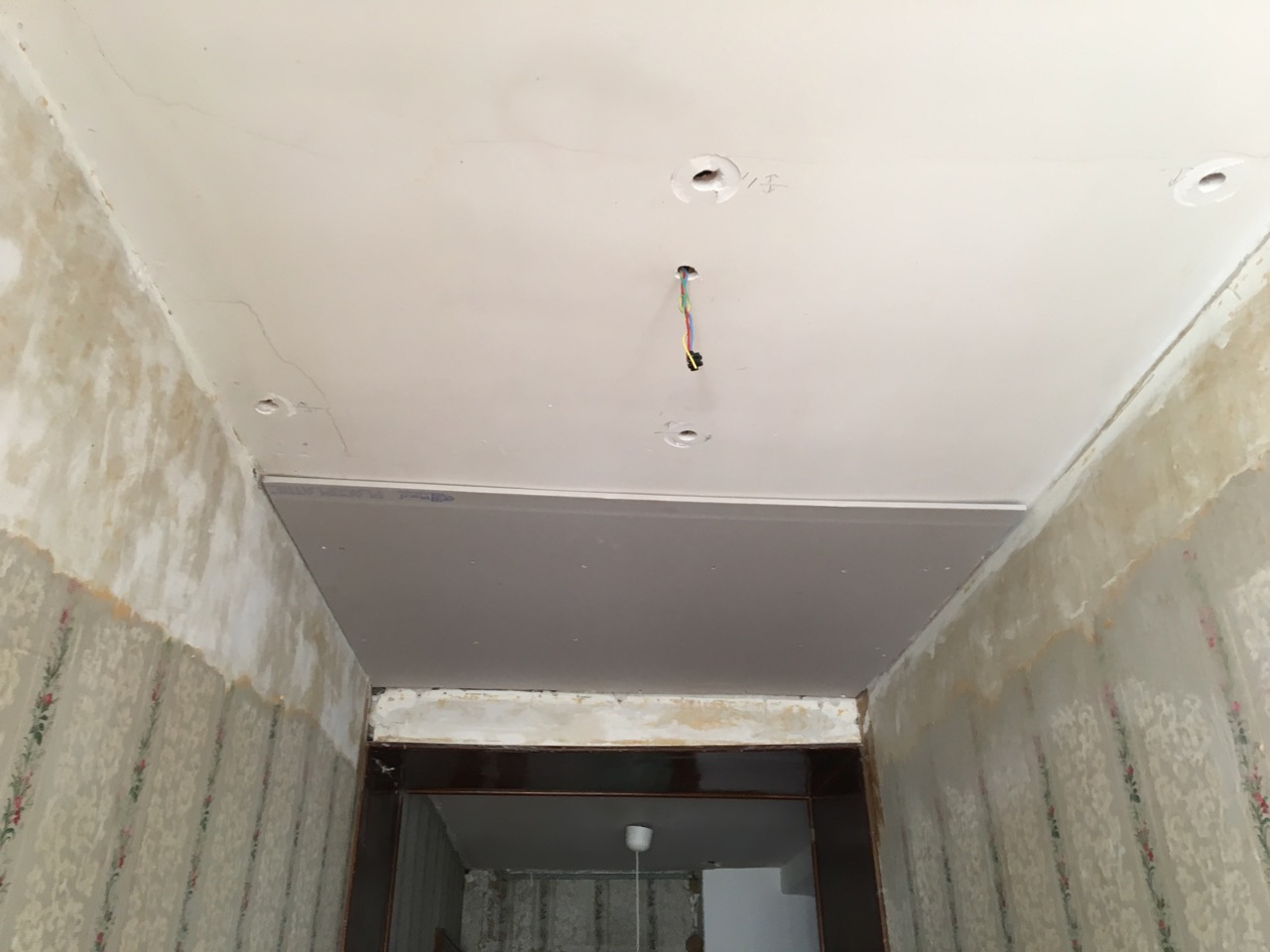 You are here: Home › 2019-04 › 15 april 2019 15 april 2019 Molnigt hela dagen men 19 grader. Fortsatte med att fixa taket i korridoren uppe. Satte upp en gipsskiva. Åkte och hämtade L på flygplatsen. Middag hemma.