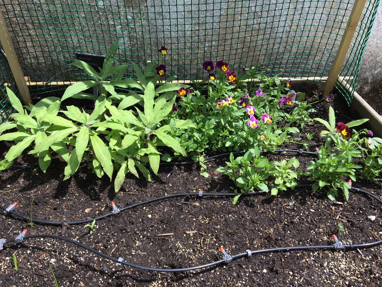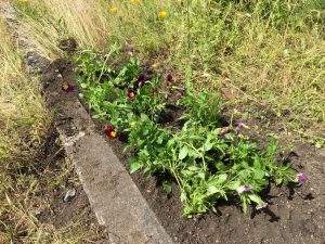 Bukettviolerna utplanterade i rabatten (flerårig växt så det kanske ser bättre ut nästa år, eller inte…)