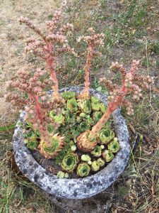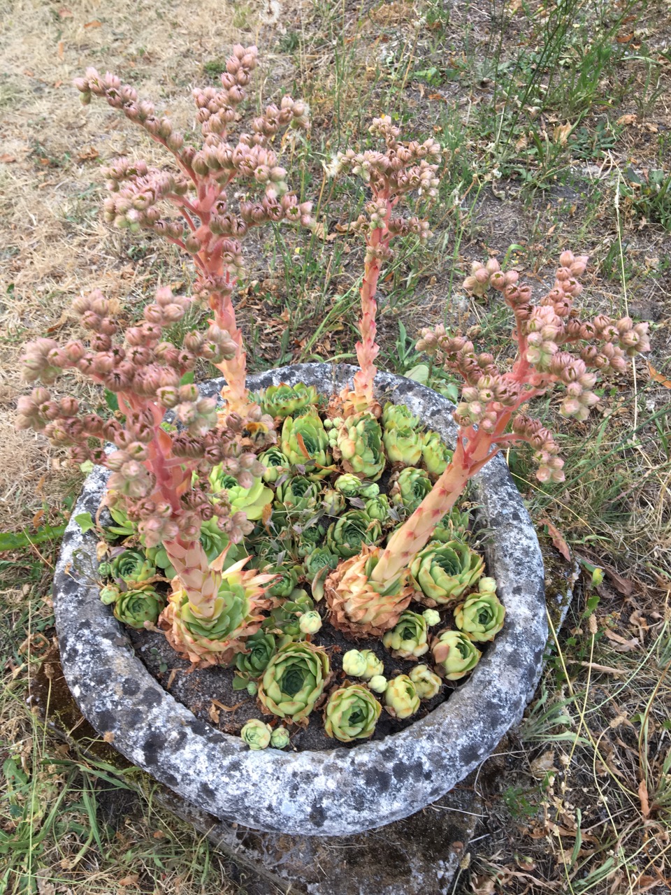 En växt som det hänt lite skumma saker med. De små kronärtskocksliknande växterna hade börjat blomma. Ser ut som något från yttre världsrymden.