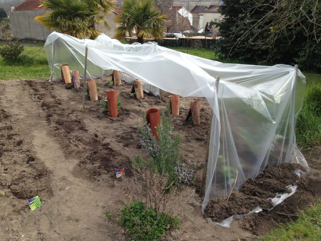 Jag och Georges fixade med att täcka över plantorna i morse. Vi får väl se hur länge det håller. Det kan ju blåsa rätt rejält ibland.