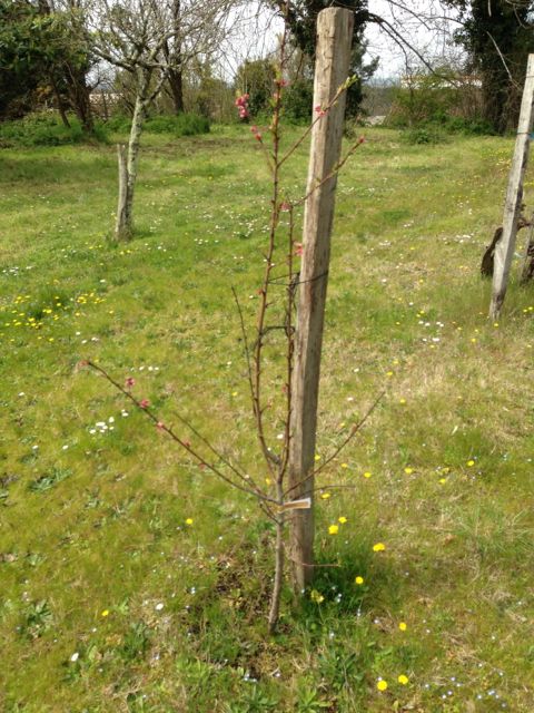 Förra året planterade vi ett nytt persikoträd som blommar bra i år.
