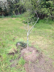 Äppleträdet från 2011 har knoppar men inte så mycket mer.