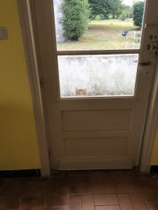 Katten blir mer och mer efterhängsen. Lite skräckfilmskänsla när man ser honom titta in.