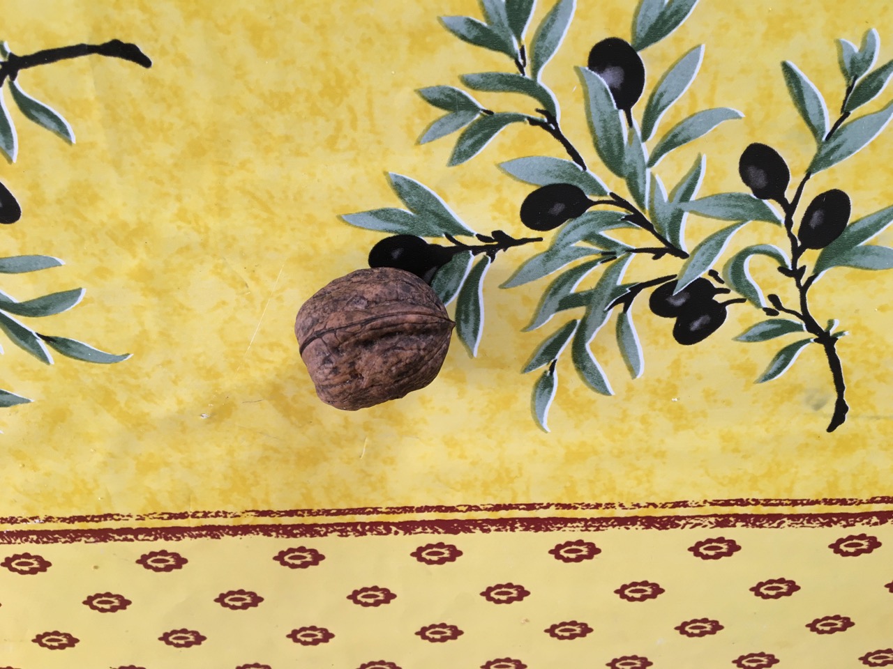 Det två valnötterna hade ramlat av trädet men verkar okey ändå.