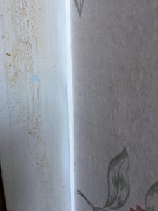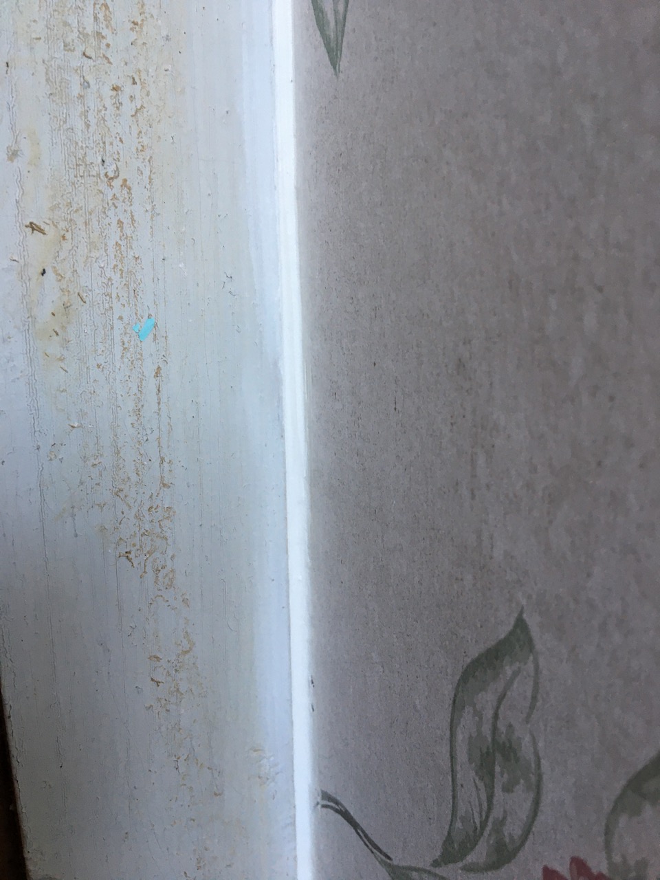”Sikaflexade” mellan dörrkarm och vägg i ”mellanrummet”.