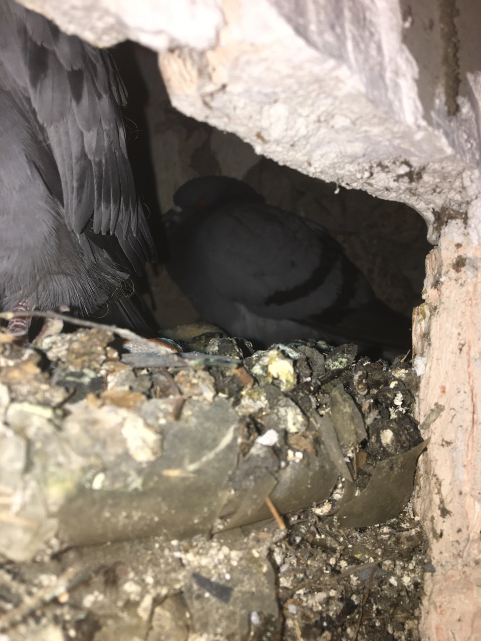 Och inne där låg det inte bara en utan två duvor. En vuxen och en stor unge (tror jag).