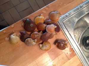 På kvällen testade vi att laga till ”petoncles”. Kokade dem som musslor. Blev riktigt goda.