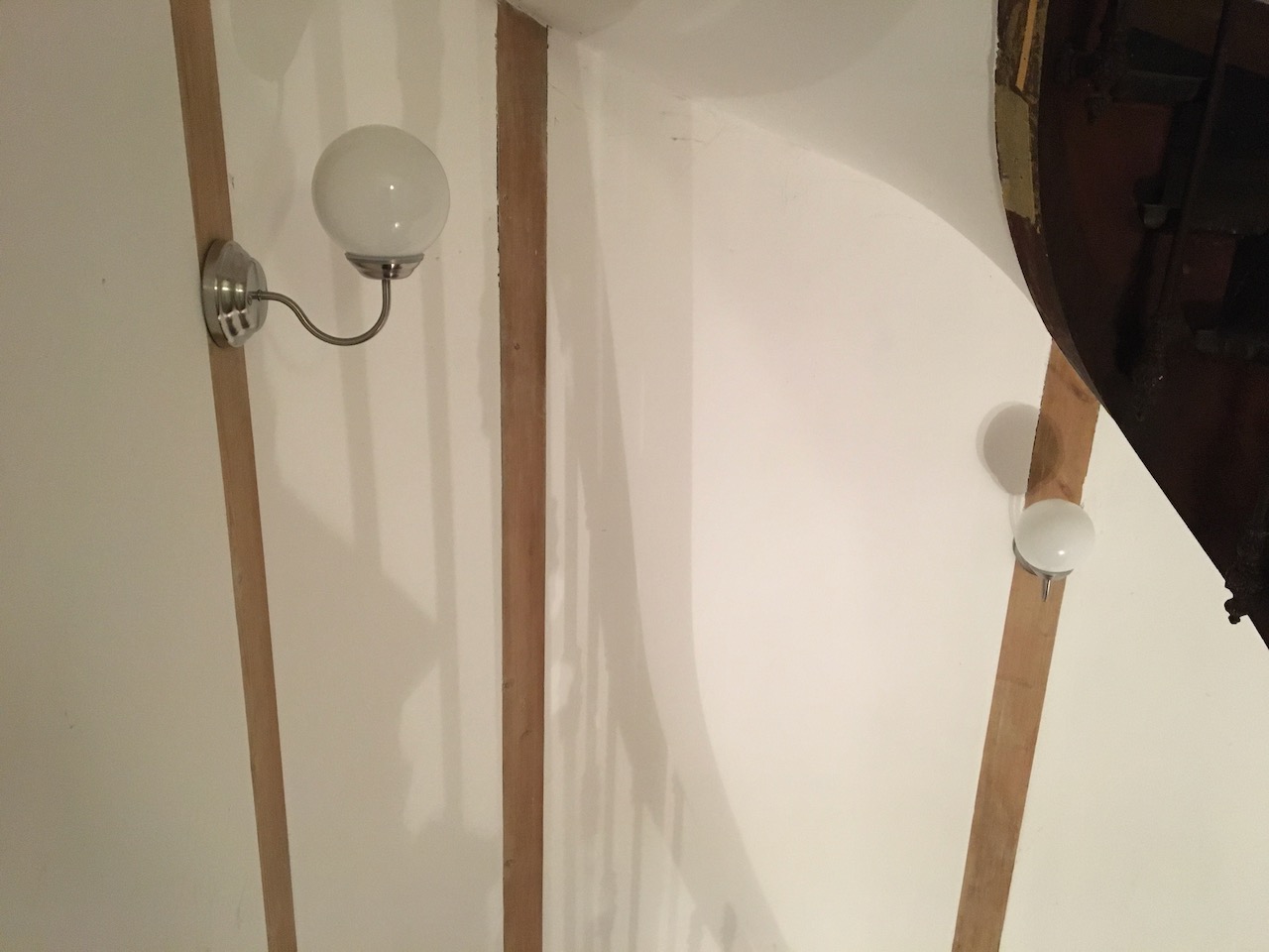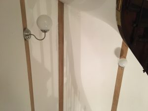 Satte upp lamporna i trappen till slut. Har inte kopplat in elen än. Behöver handla lite grejer först.