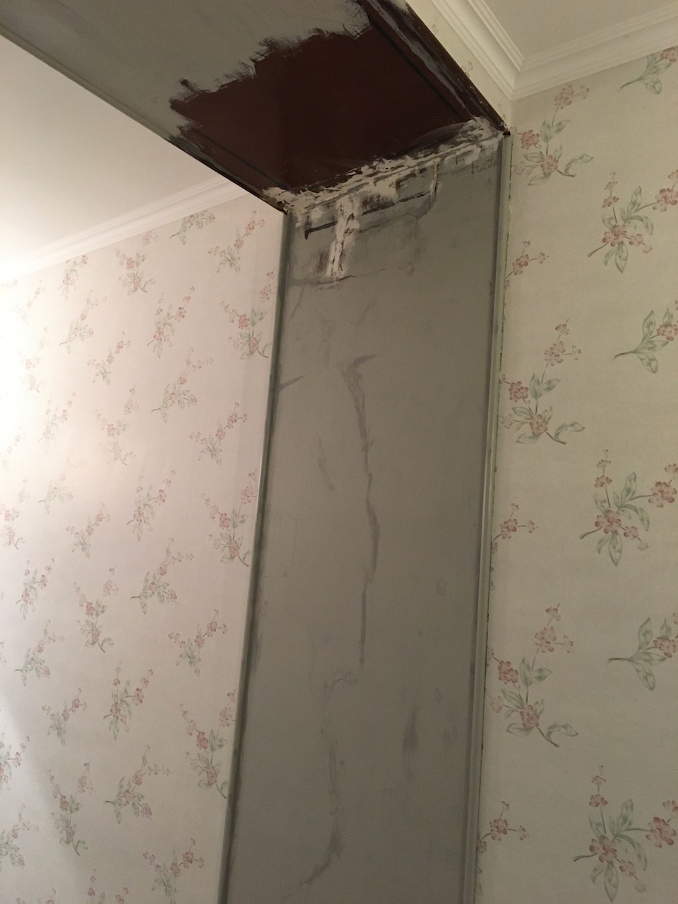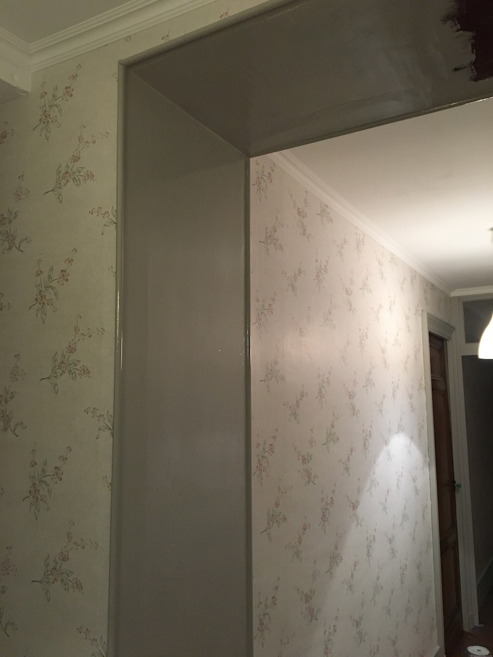 Målat på halva ”gördeln” på väggen i hallen och andra halvan fick lite mer spackel på sig.