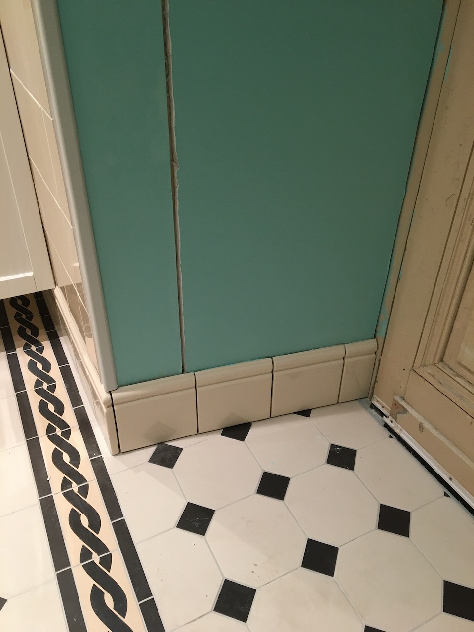 Jag har fortsatt med nischen för badrumsutgången mot balkongen. Satt dit sockel och målat gipsskivorna.