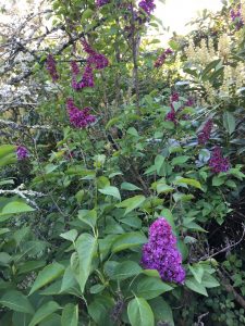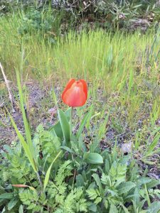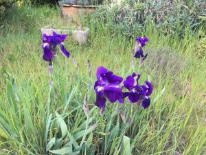 Fint i trädgården. Lite spridda irisar och tulpaner: