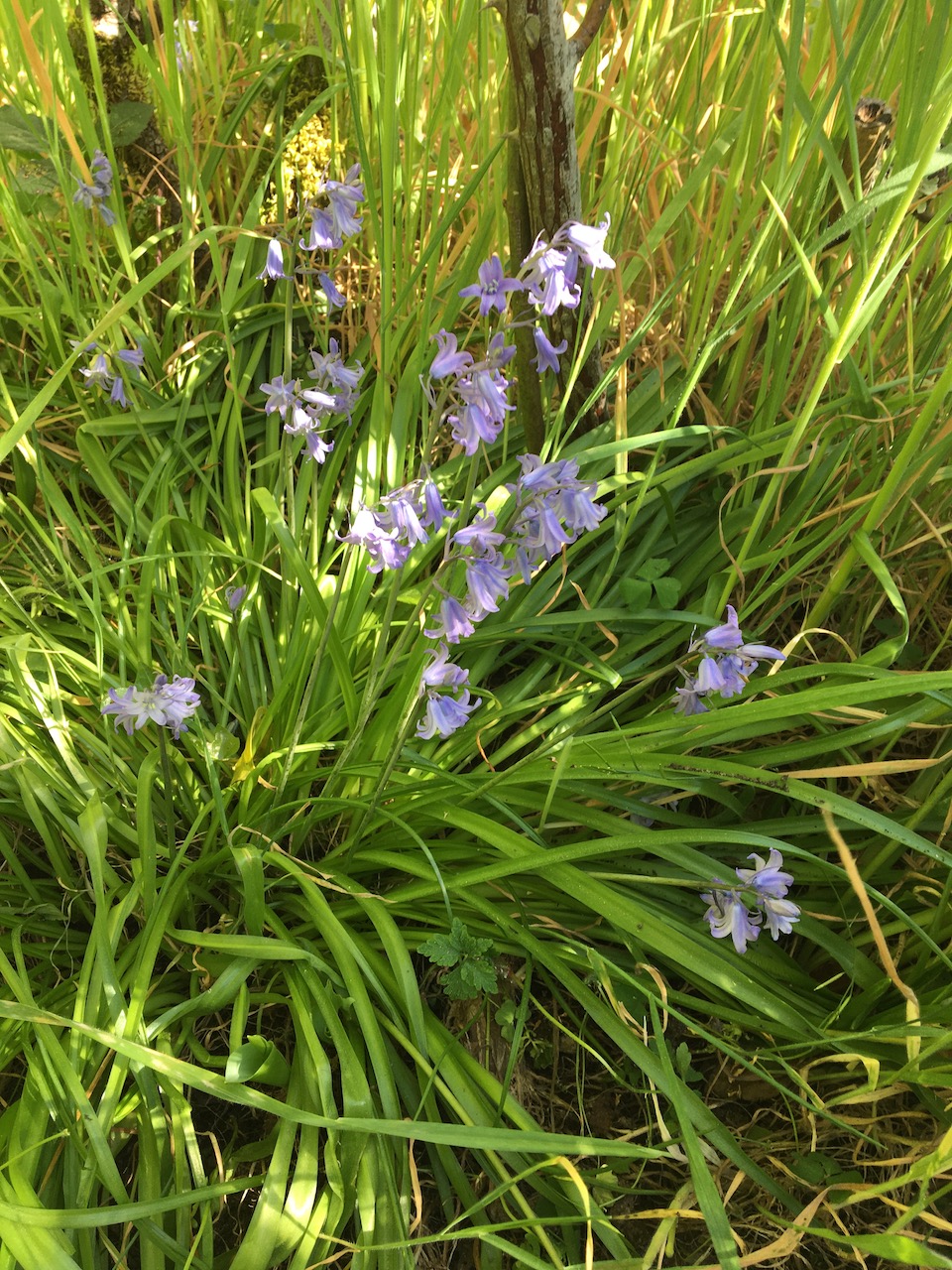 Hittade spansk klockhyacint i gräset bakom buxbomscirkeln.