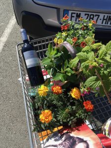 Lite blommor köpte vi också och numera kan man även köpa vin i trädgårdsbutiken.