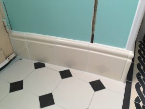 Jag har även fogat sista kakelplattorna i badrummet uppe i nischen ut mot balkongen och grundmålat listerna som ska sitta där.