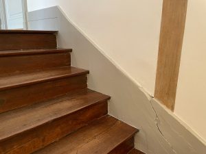 Målat klart sockeln i trappen. Lite kladdigt kanske man kan tycka men allt är bättre än hur det var förut.