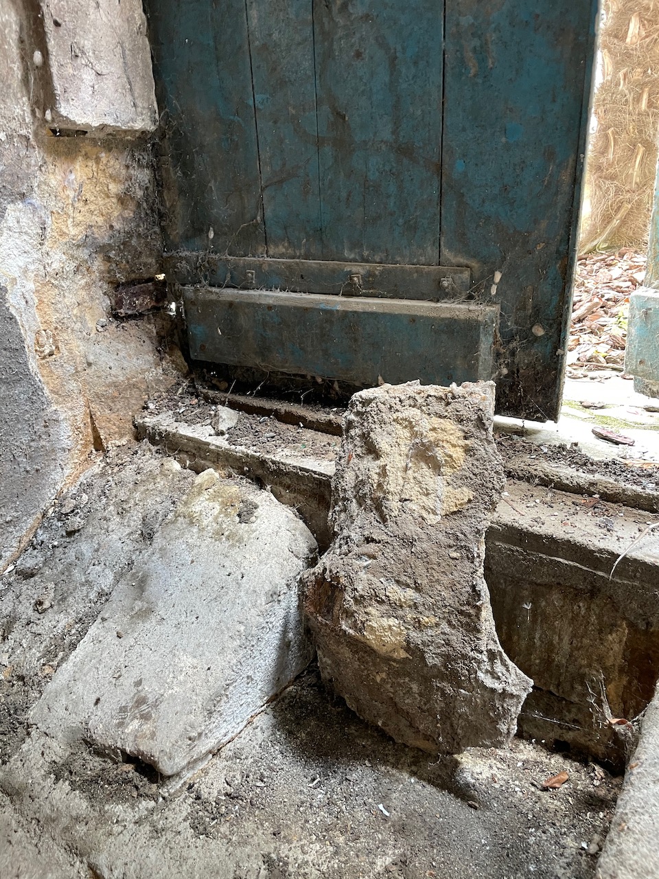 Jag försökte ”laga” den sten vid luckans ena gångjärn som gått sönder.