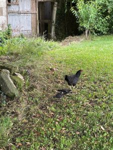Rensade lite i rabatten ut mot gatan. L gjorde i ordning hönshuset och hoppas locka in hönan dit med en sträng med mat.