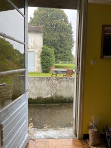Fick sitta inne och äta lunch. Regnet vräkte ner.