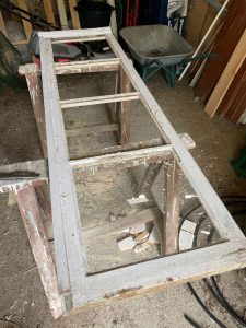 Jag började kitta om ett fönster i matrummet. Tog bort alla fyra rutor.