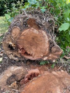 Sågade ner gamla plommonträdet. Själva trädet i mitten, det andra runt omkring är stammar från murgrönan.