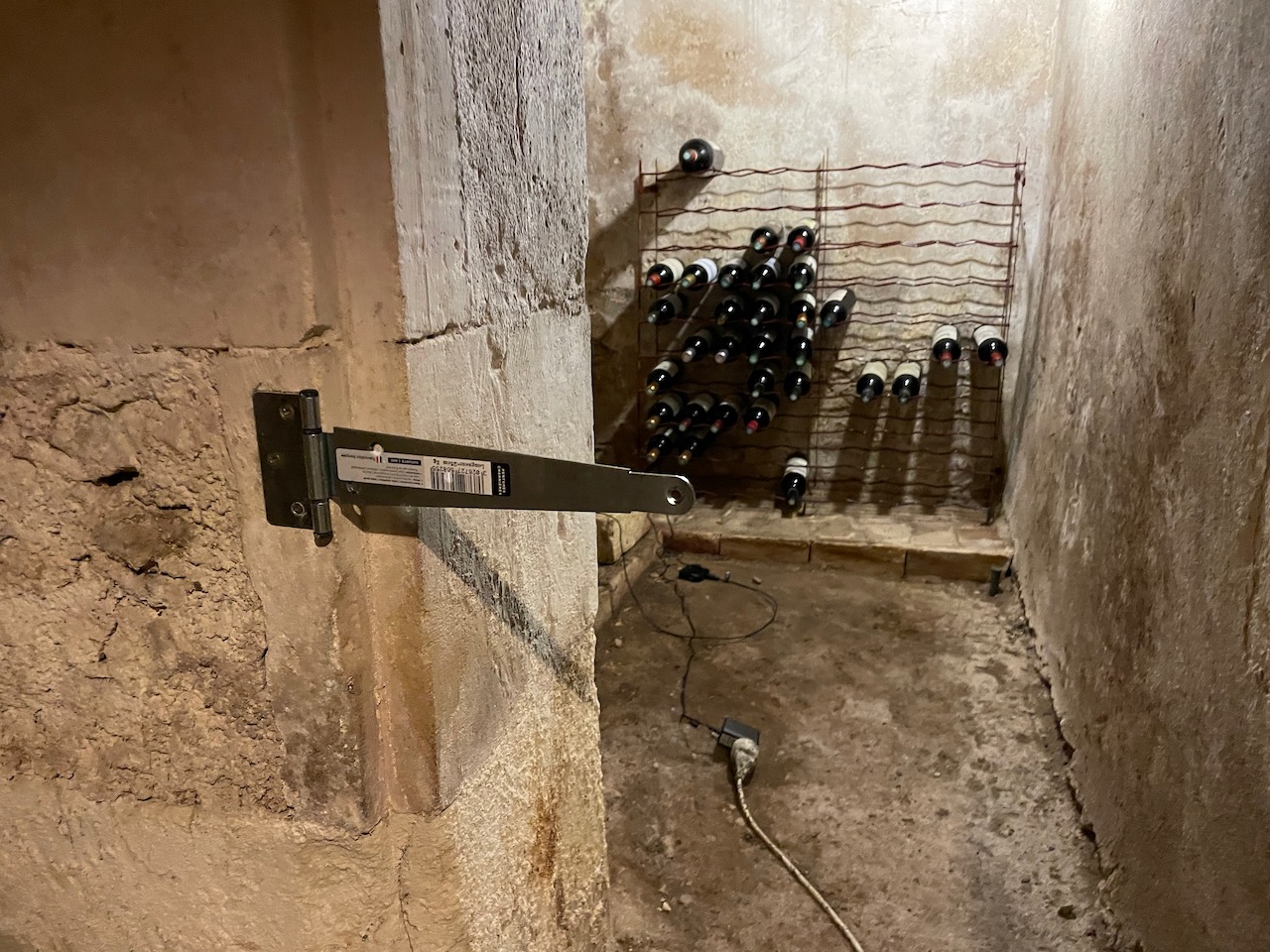 Började fixa med gångjärn till dörren till vinkällarrummet.