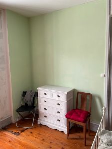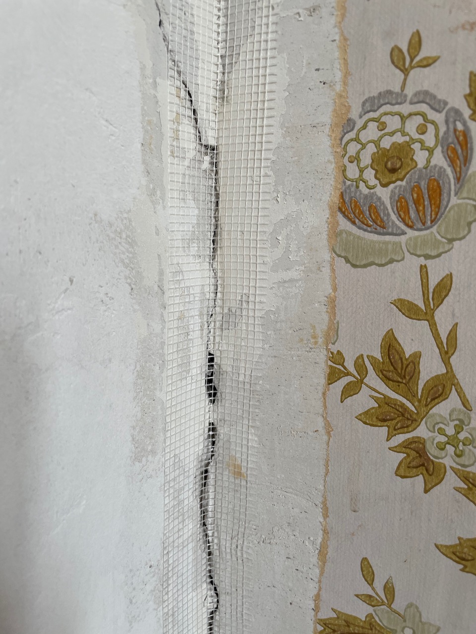 Fortsatte med sovrummet. I ett hörn är det rätt mycket sprucket gips.