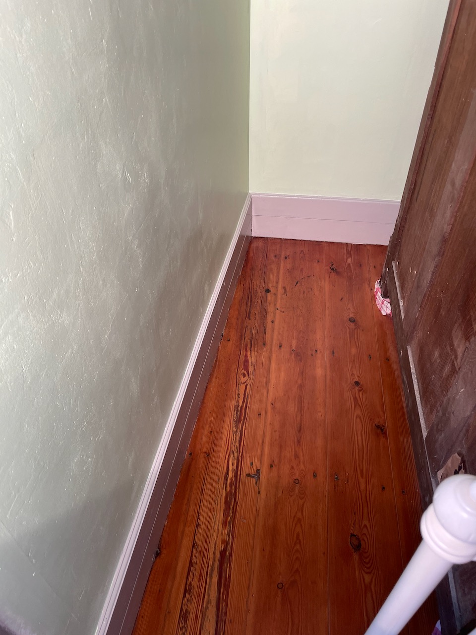 Målat lite, lackat golvet bakom skåpet så får det torka ordentligt till nästa resa då kan vi flytta tillbaka skåpet. Satt upp några taklister också.