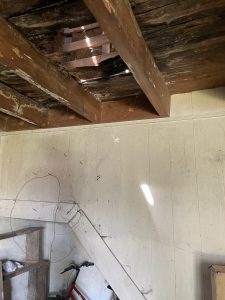 När solen står högt på himlen kan man ana att det är hål i taket på uthuset 🙂