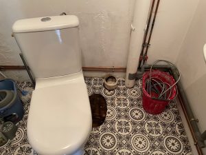 Men eftermiddagen upptogs till stor del att försöka rensa ett stopp i avloppet.