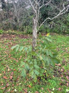 Och huvudträdet på valnöten ser dött ut men utskottet från roten verkar frodas.