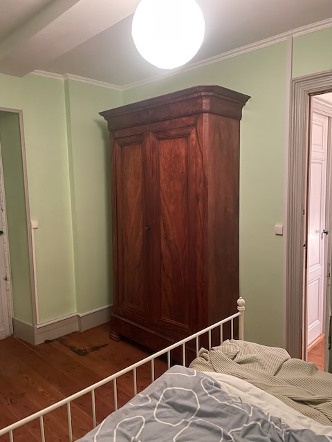 Vi flyttade klädskåpet till andra sidan av rummet för att det skulle bli bättre med värmepumpen. Detaljer med byrå och stol är inte riktig klara. Och skåpet ska längre in i hörnet när jag tagit bort eller flyttat ett uttag som sitter där bakom.
