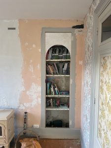 Matrummet igen. Ingen tapetsering idag. Väntar på att färg ska torka och att jag ska fixa lådan i hörnet…