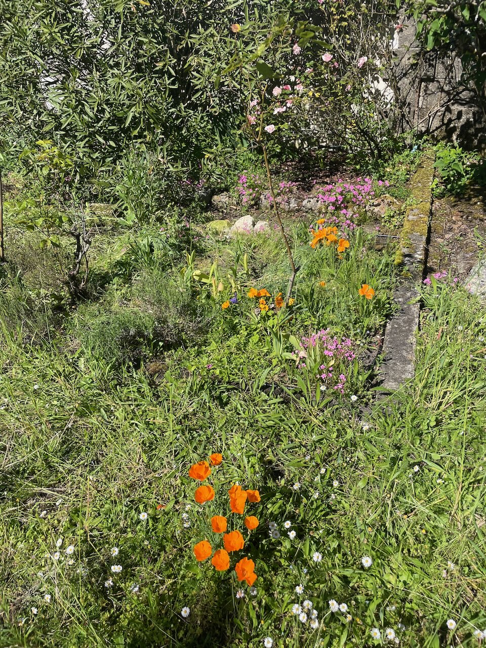 Rensat mycket ogräs i rabatten, vid vinet och i ”djungelgången” ner mot pool-grannen. I djungelgången är det ju inte ogräs utan mer grenar som växer i farlig ögonhöjd och liknande som jag rensar bort.