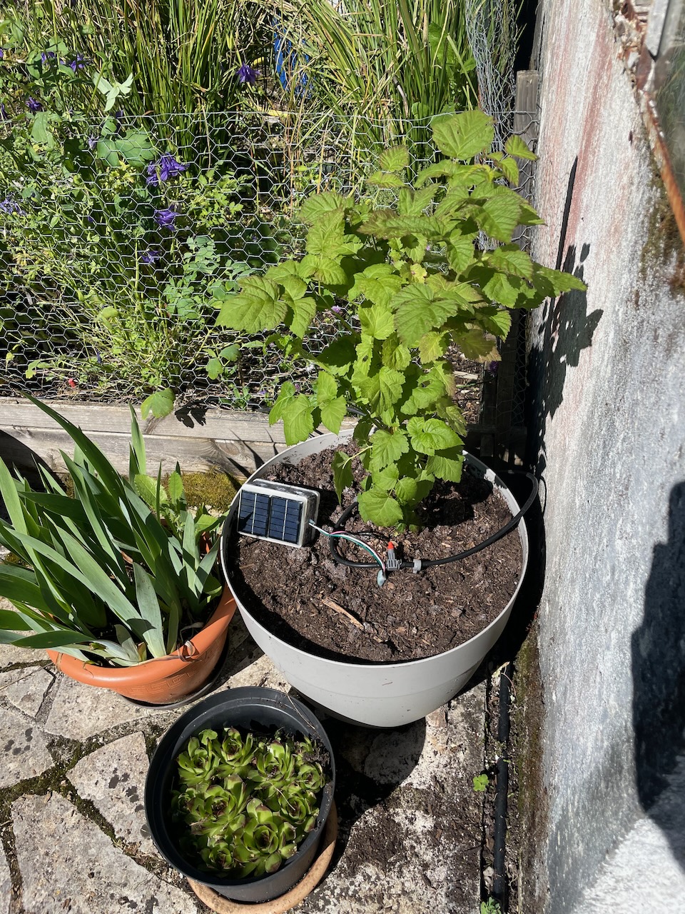 Bara fixat i trädgården idag. Köpte några nya lavendelplantor (de gamla dog av torkan förra sommaren) och en hallonplanta. Hallonplantan ska nu få vara i en kruka som får lite bevattning också. Och en hemmabyggd fuktmätare.