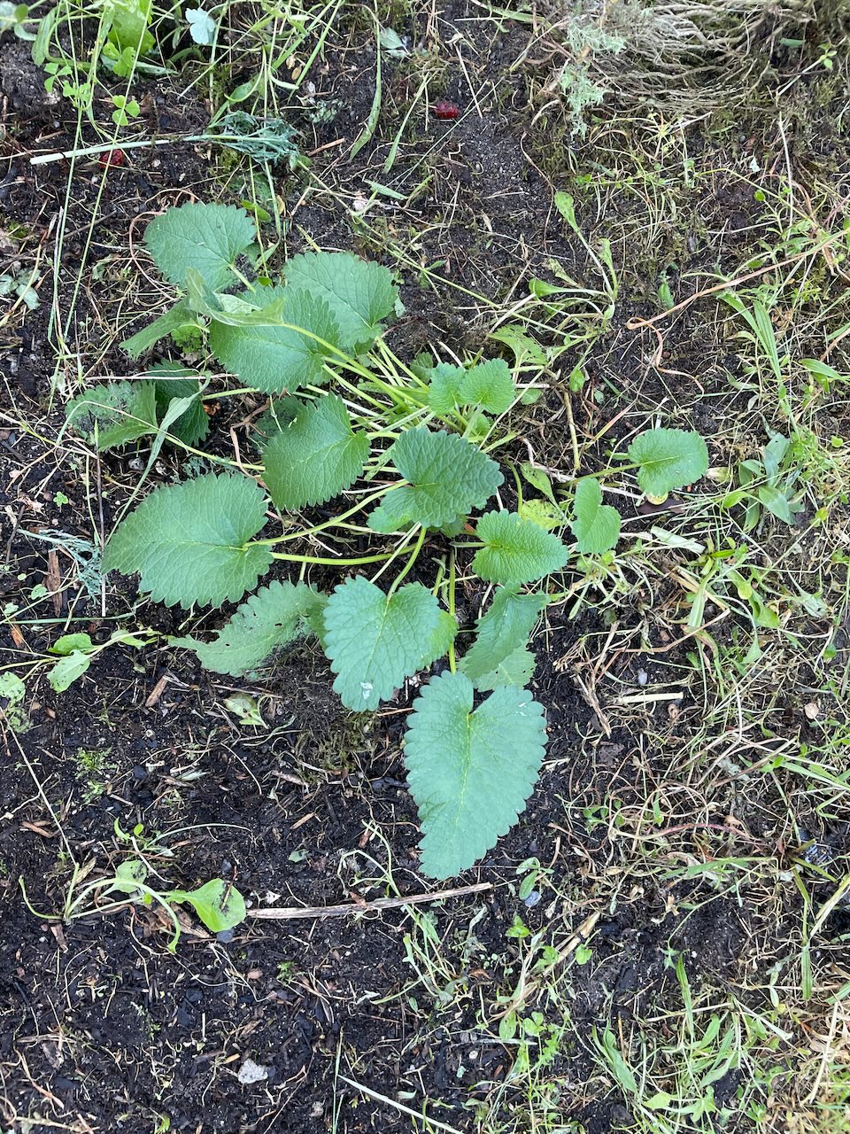 När jag rensade i rabatten såg jag något som inte var ogräs och det var ju praktbetonikan som kommer från Gyva och som planterades i september förra året.
