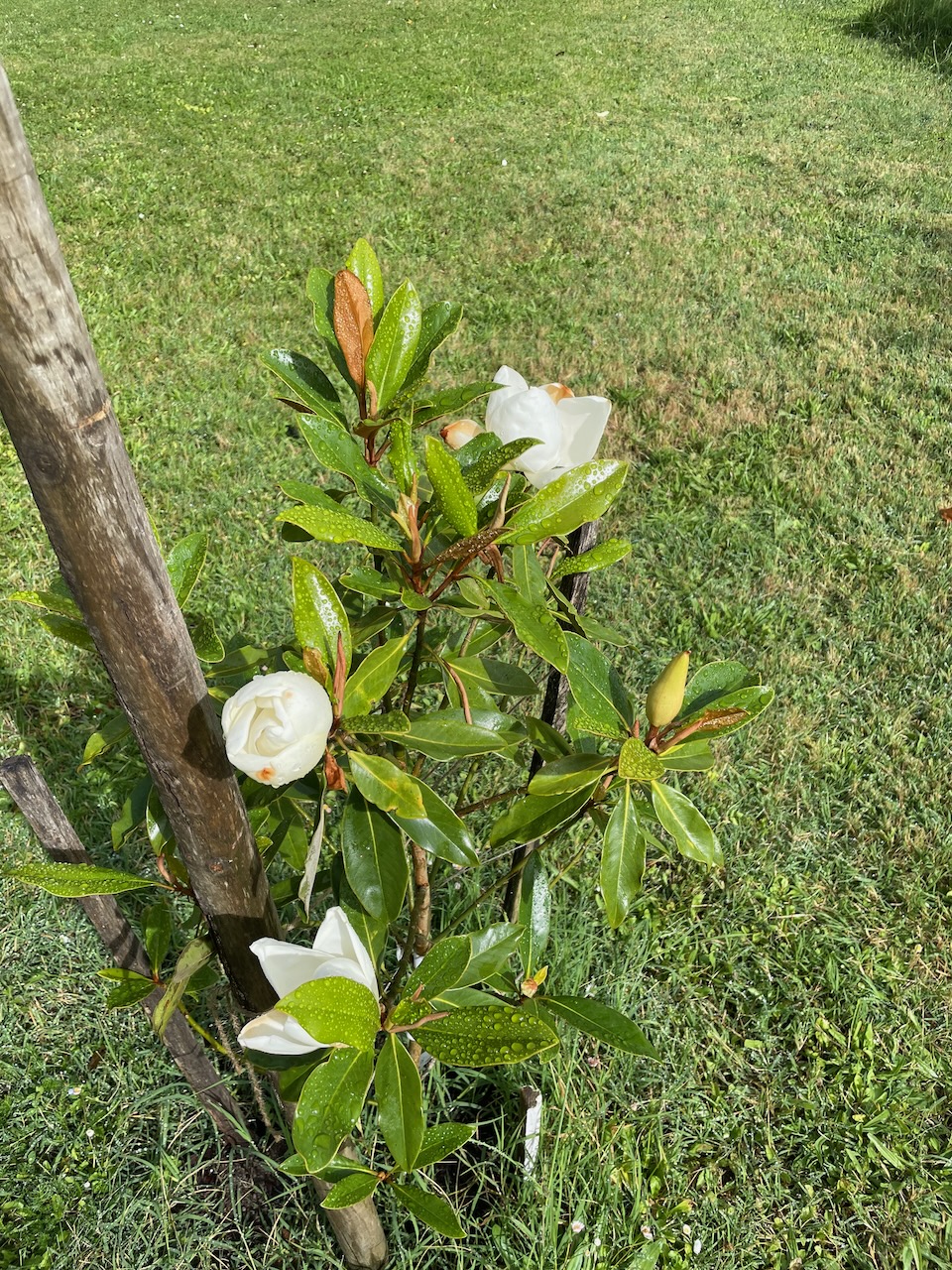 Och i morse så hade två till magnoliablommor öppnat sig lite. Sista dagen, bra jobbat. Tre av fem.