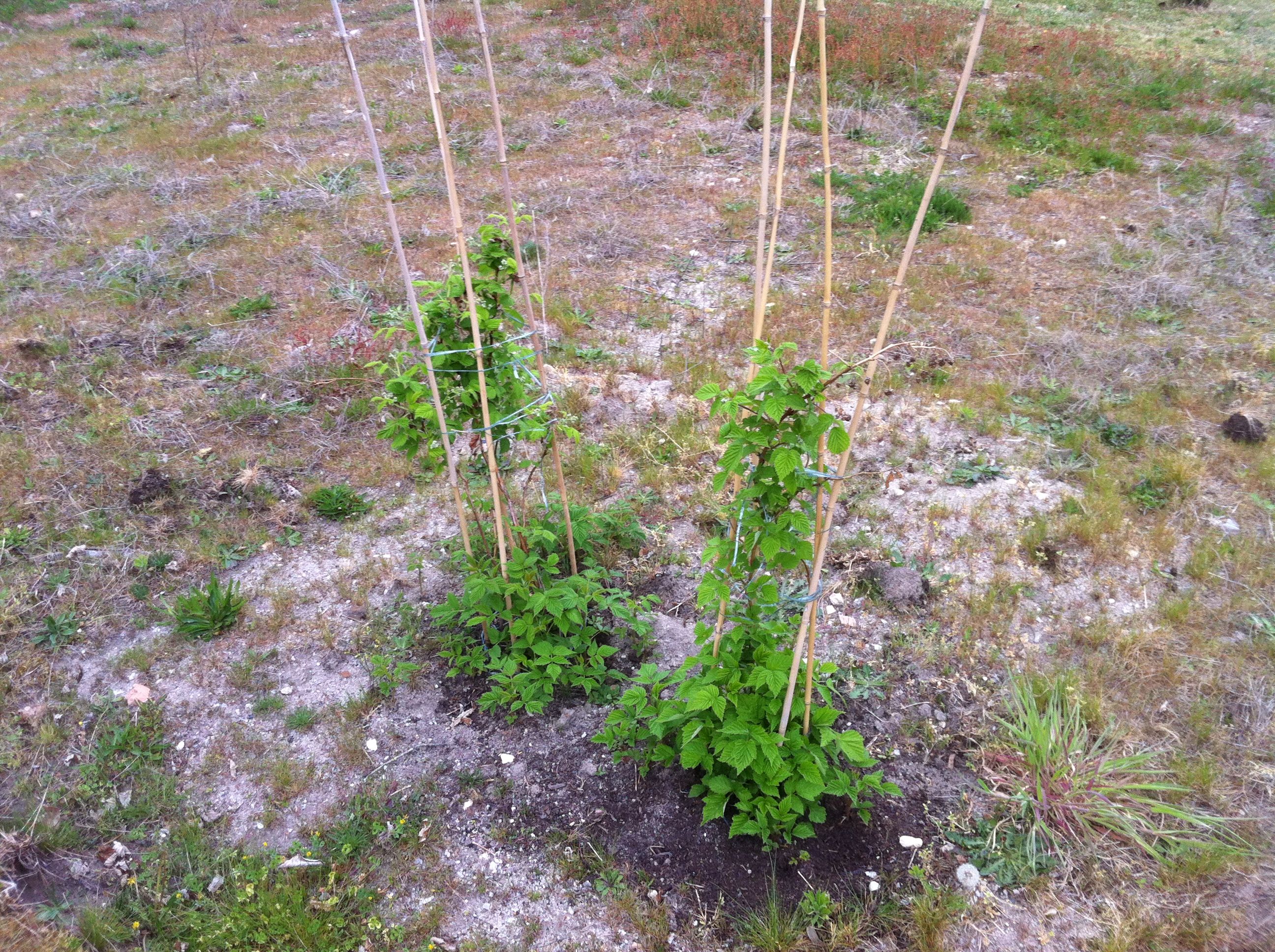 Våra nysatta hallonbuskar står sig också och lite kryddor (rosmarin, citronmeliss och persilja).