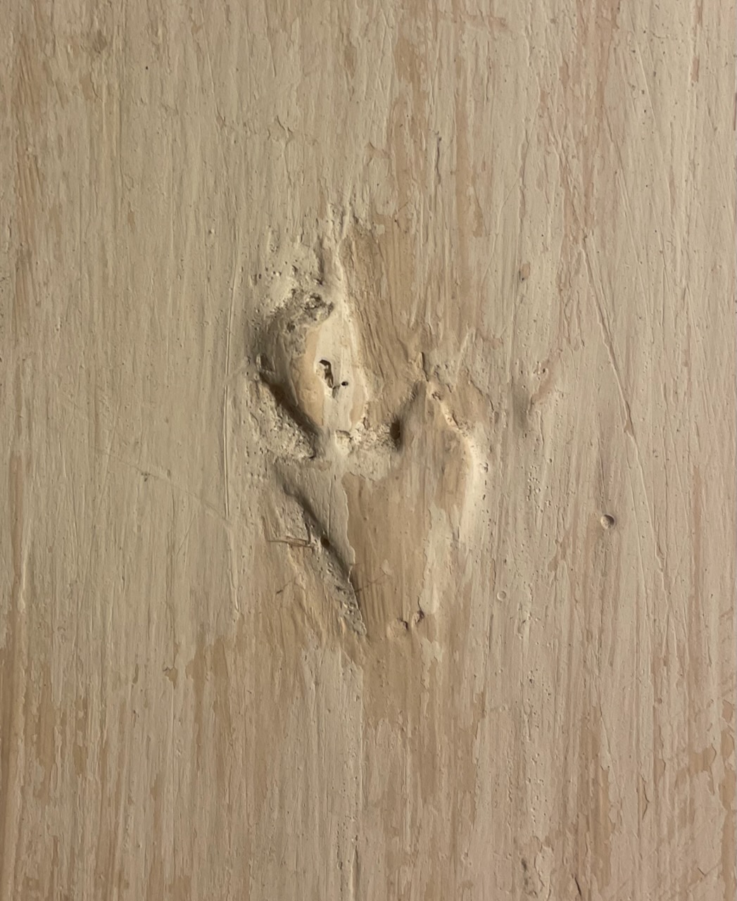 När jag gick ner till källaren hittade jag ett spännande litet konstverk. Antagligen från den som ”spacklade” trappväggen eller någon busunge efter det.